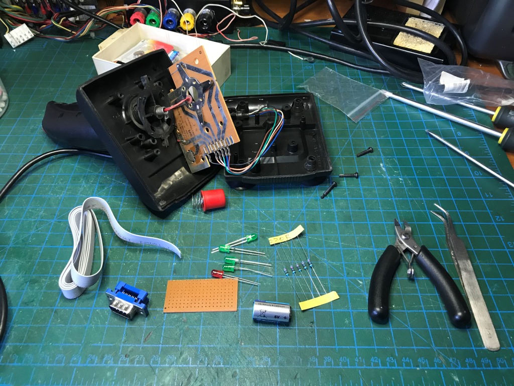 Olay şu kısaca, bir yığın joystik'iniz varsa uzun zamandır bir yerlerde depoladığınız, ve bilirsiniz ki elden geçmeleri lazım, ama bir zaman bulup o işe bulaşmamışsınızdır zorunda kalmadıkça... Hah tam o işe niyetlenecek zamanı bulduğunuzda karşınıza ikinci bir problem çıkar; bunları tamirat masanıza yatırdığınızda masanızın yakınlarına da bir Commodore set kurmanız gerekir ki joystick'lerin tamiratı öncesi ve sırasında bazı testler yapabilmek için. İşte o konu hep benim başımı ağrıtmıştır zira C64 setup'ımla gurur duymama rağmen o setup tamirat masama çok uzak. Dolayısıyla elimde bağırsakları ortaya dökülmüş joystick ile odanın bir ucundan diğerine zırt pırt gidip gelmek çok sıkıntılı süreç...