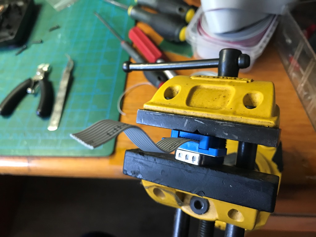 Ama ben bu DB9'a ribbon kabloyu tutturmak için masaüstü mengenemi kullandıyorum.
