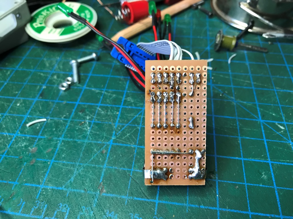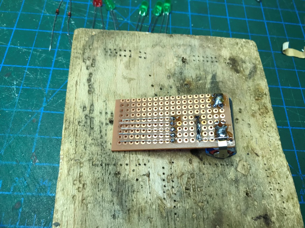 Şimdi devreyi bir kenara bırakıp LED'lerle ilgileniyorum. Aslında bunu sadece devre plaketi şeklinde yapsaydım LED'leri basitçe lehimleyip geçebilirdim. Ancak bir kutunun içine koyacağm için LED'lerin devreye kablo ile bağlanması lazım.