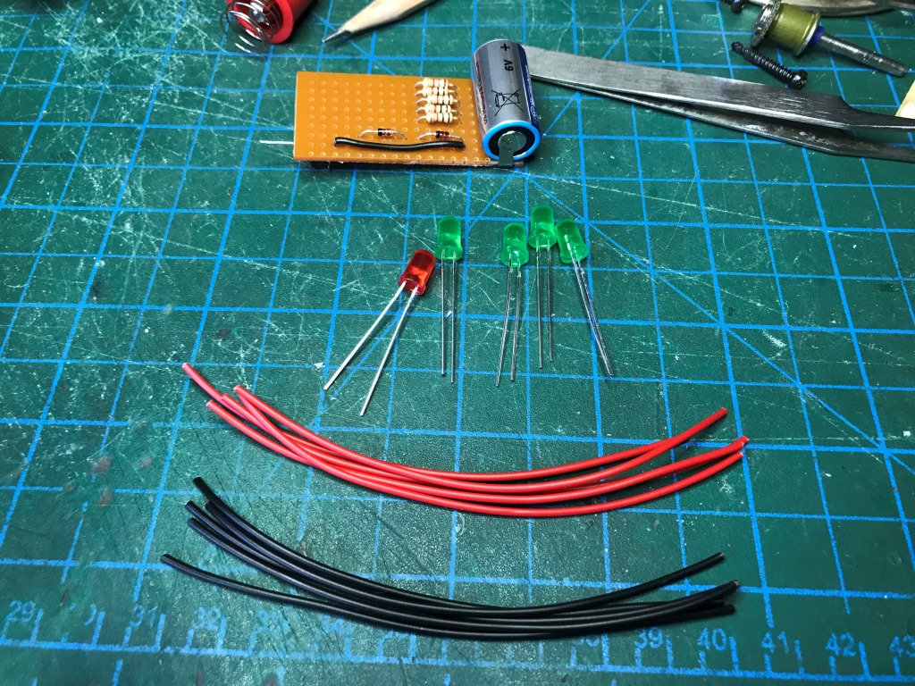 Bu sebeple, bu anahtarların veya onlara giden kabloların çalışıp çalışmadığını test edebilmek için basit bir güç kaynağı (örn. pil), bir kaç tane LED ve LED'leri sürmek için de bir kaç tane direnç yeterli. Malzemeler herhangi bir malzeme çekmecesinde bulunabilecek cinsten. Ben 1KOhm'luk direnç kullandım ama isteyen 150Ohm-1K arası herhangi bir direnç kullanabilir. Pil olarak malzeme çekmecemde ne amaçla aldığımı bile unuttuğum (muhtemel site kapısı kumandası içindir) 6V'luk minik bir pil kullandım. İsteyen 2-3 tane seri bağlanmış kalem pil de kullanabilir.