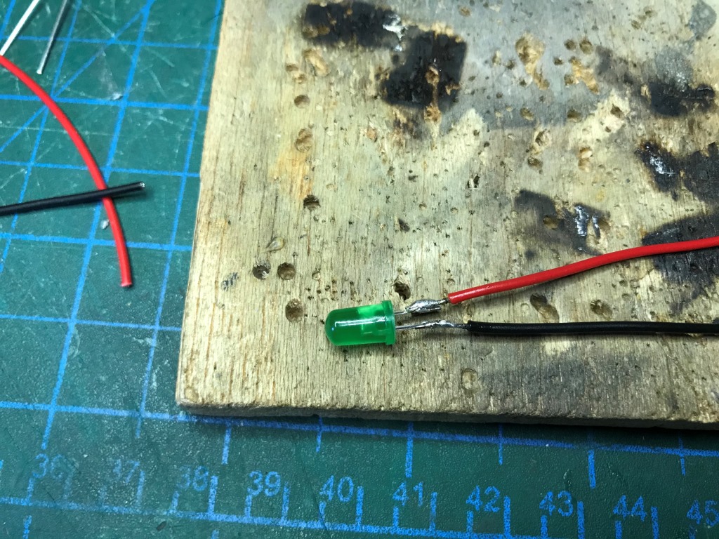 LED'leri tek tek kırmızı ve siyah kablolarla donattıktan sonra ...